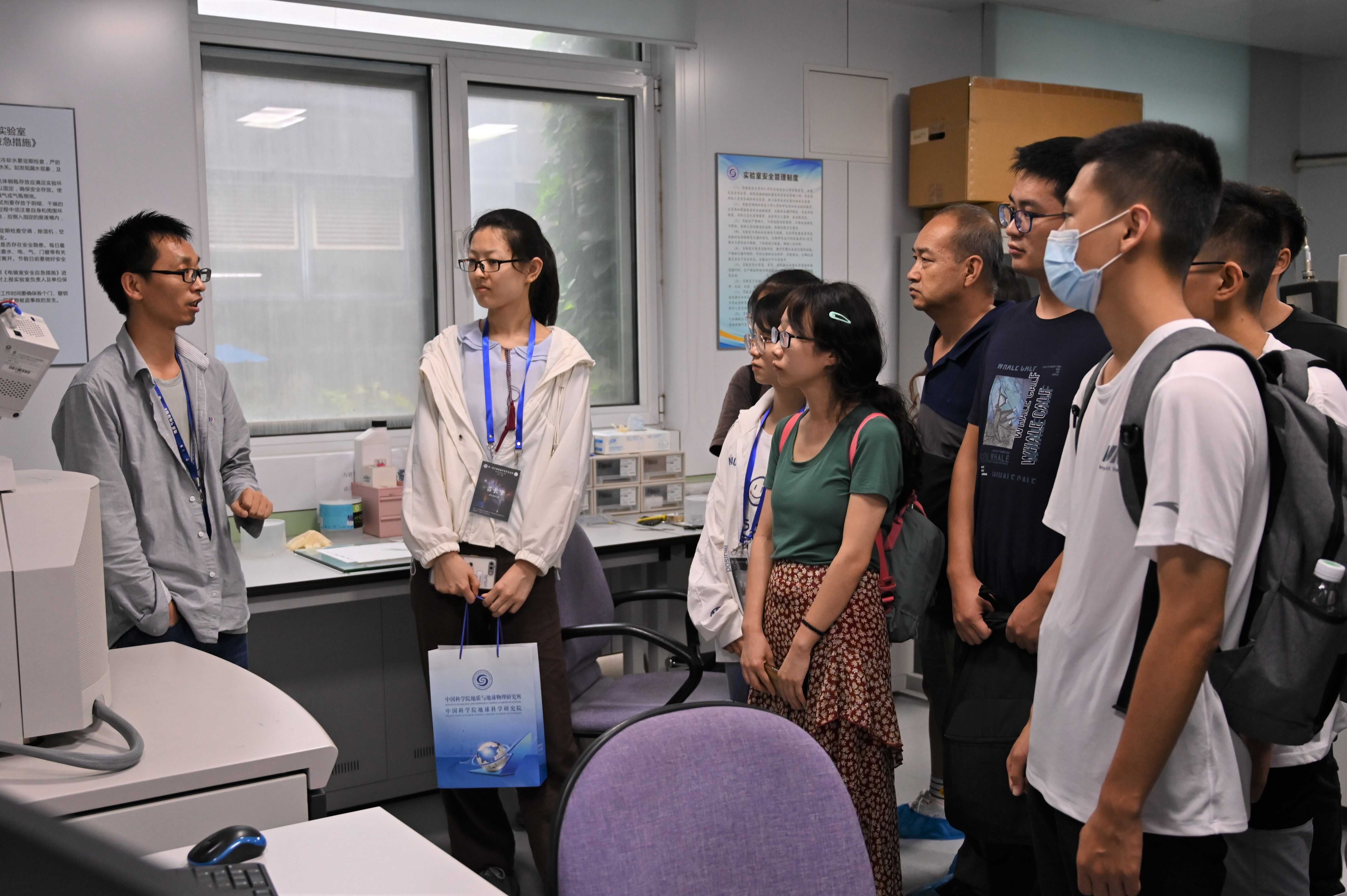 谷立新为第1届生物地磁培训班学员介绍显微学实验室
