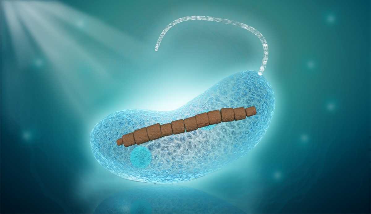图1 趋磁细菌,棕色颗粒为其“感磁器官”——磁小体