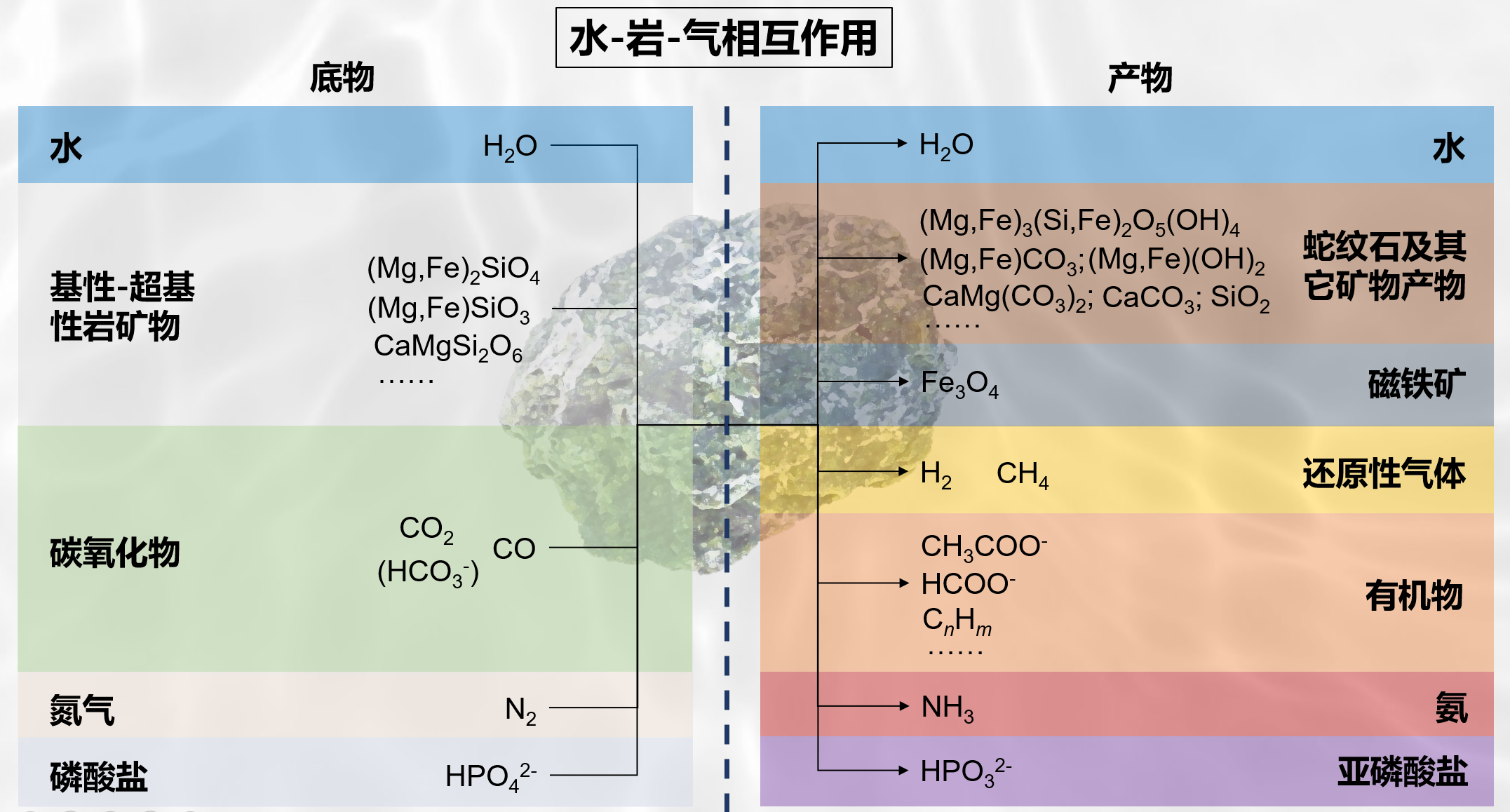 图1 蛇纹石化过程及其相关联的水-岩-气作用可以指示地外环境的宜居性