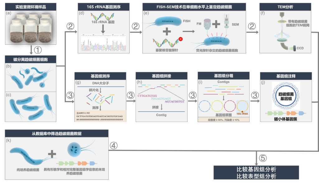 图1 未培养趋磁细菌基因组和表型组研究的工作流程