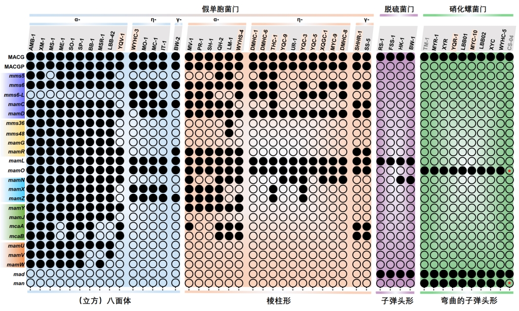 图3 磁小体磁铁矿晶体形貌与磁小体基因相关性