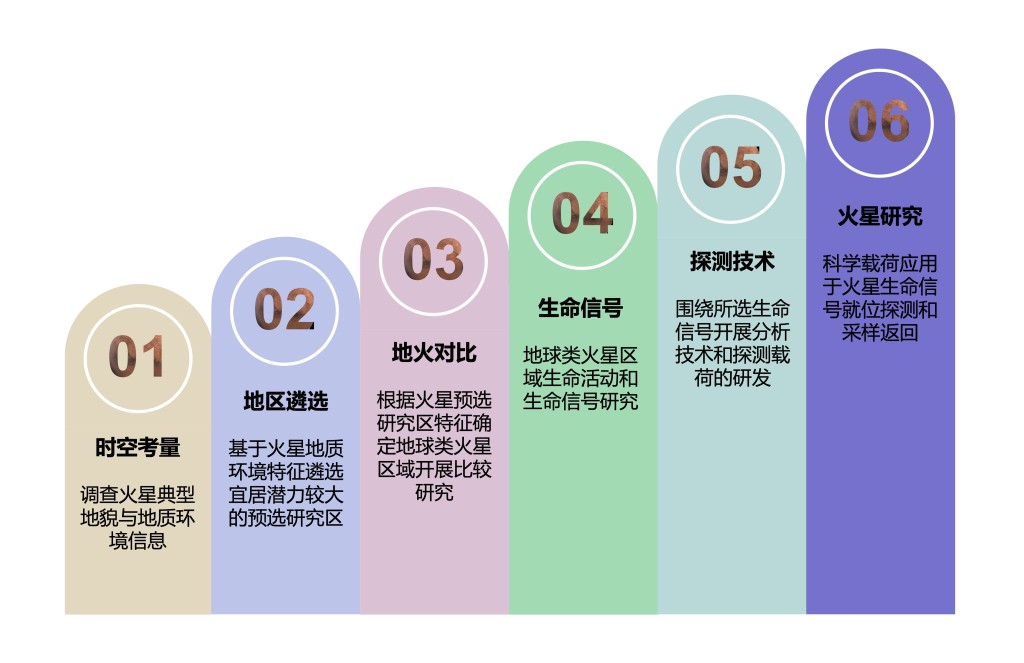 探索火星环境演化和生命信号一直是火星探测的重要科学目标。“天问一号”首次火星探测任务迈出了我国行星探测征程的第一步,未来我国还将实施“天问三号”火星采样返回任务。火星生命探测研究中“探哪里”、“探什么”、“如何探”是当前天体生物学研究的重大课题和挑战。“探哪里”主要指火星生命探测和采样返回任务的着陆区和采样区的确定;“探什么”主要是目标生命信号的遴选;“如何探”则涉及生命信号准确探测和解译所需的分析技术和载荷设备等。这三者相辅相成,需要在火星任务规划之初就进行科学布局并开展预先研究。