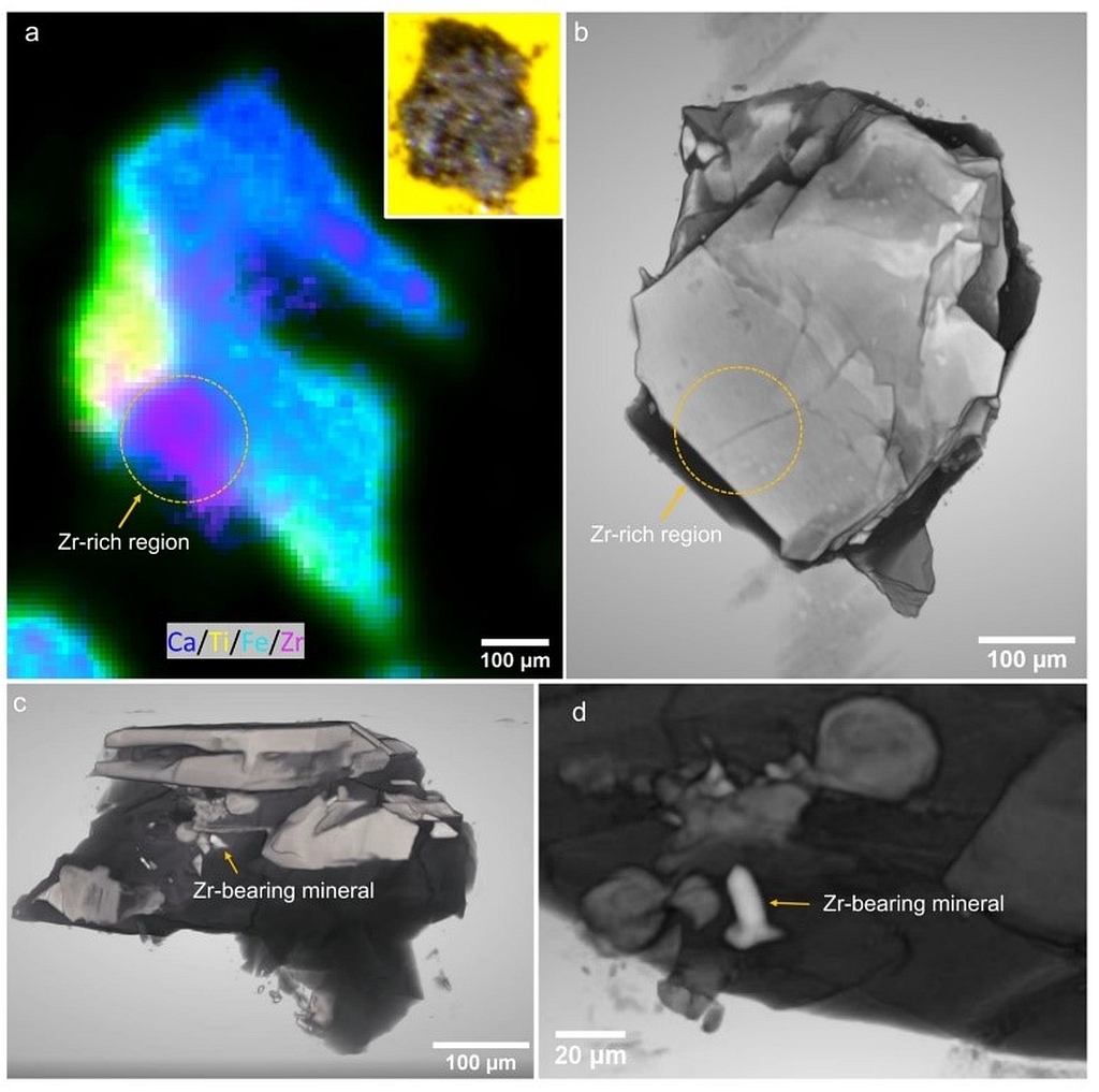 图3 μXRF/3D-XRM联用精准定位目标样品中的含锆矿物