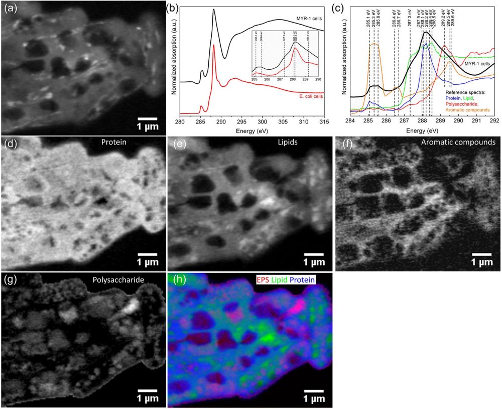 图3 同步辐射扫描透射X-射线显微谱学技术(STXM-XANES)研究趋磁大杆菌细胞有机质种类及其分布特征