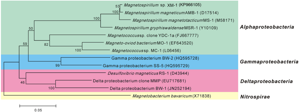 91----Wang, Y., Lin, W., Li, J., Zhang, T., Li, Y., Tian, J., Gu, L., Heyden, Y.V. and Pan, Y. (2015) Characterizing and optimizing magnetosome production of Magnetospirillum sp. XM-1 isolated from Xi'an City Moat, China.